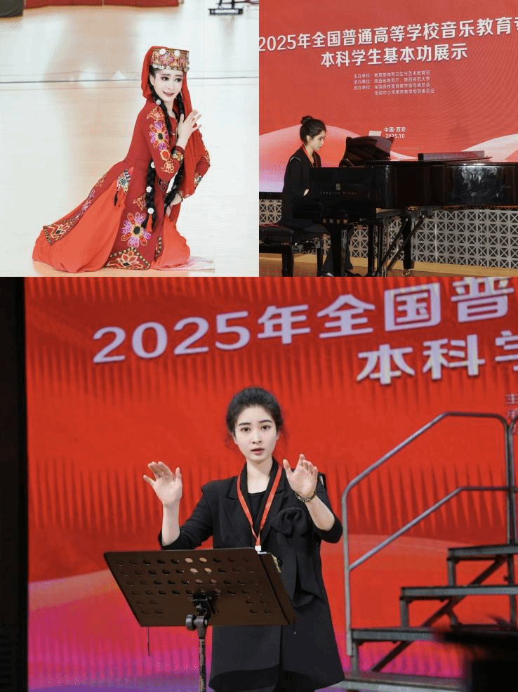 近日,2025年全国普通高等学校音乐教育专业本科学生基本功展示在陕西师范大学顺利闭幕,我院教授、博士生导师孙国军斩获教师组审美与人文素养展示单项奖、个人全能奖二等奖;音乐学22-3班凯迪丽娅·卡哈尔曼(音乐指导教师任洪胜、谢飞,舞蹈指导教师阿依努尔·买买提沙吾提、谢伊代·塔伊尔)斩获学生组专业技能展示(自选)单项奖、个人全能奖三等奖。