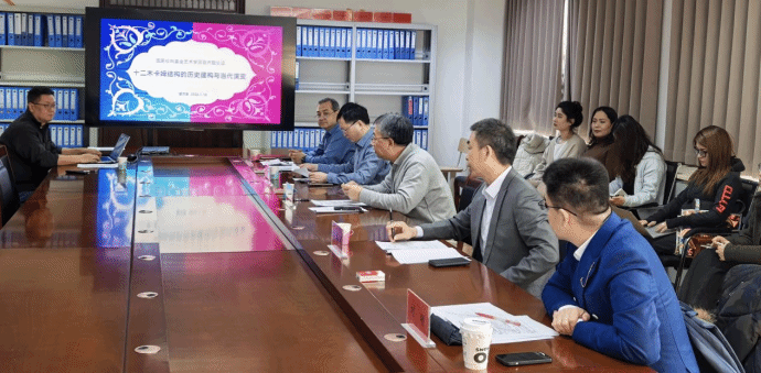 会上,谢万章老师就《十二木卡姆结构的历史建构与当代演变》、肖尧轩老师就《龟兹石窟壁画音乐形象的文化谱系研究》进行详细汇报,系统阐述了项目研究背景、核心问题、研究框架与实施路径。两项项目均立足新疆本土文化资源,聚焦非物质文化遗产与丝路音乐图像挖掘,具有鲜明地域特色和重要学术价值。专家们对项目学术意义与前期准备给予充分肯定,围绕研究边界、理论创新、田野工作及成果转化等关键环节提出建设性意见,为项目后续深化研究指明方向。