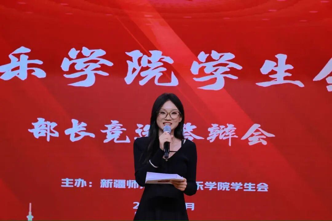 为深入学习贯彻习近平新时代中国特色社会主义思想和党的二十届三中全会精神,贯彻落实《中华全国学生联合会章程》和《新疆维吾尔自治区学生联合会章程》要求,充分发挥学生的主体作用,及时有效地为学生干部队伍补充新生力量,进一步加强学生干部队伍建设,音乐学院分团委学生会于2025年9月12日顺利召开学生会部长竞选答辩会”。本次担任评委的有音乐学院分团委书记何伟老师,音乐学院分团委学生会执行主席张昱婷,分团委学生兼职副书记程千秋、郑冉,分团委学生会主席团成员周武德。
