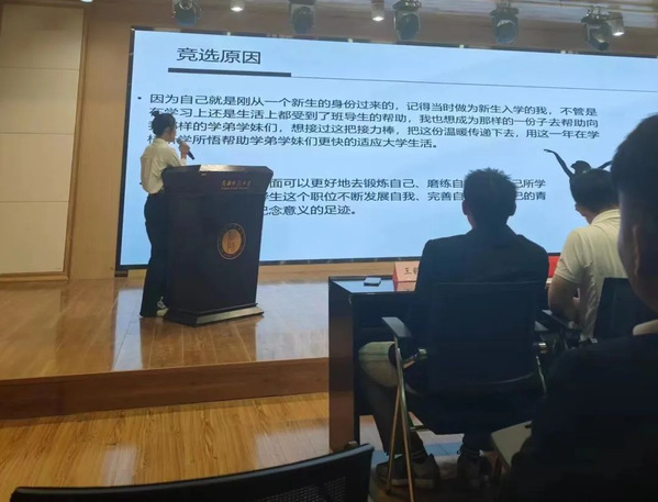 为贯彻落实《关于加强和改进新形势下高校思想政治工作的意见》精神,切实做好音乐学院学生思想政治教育及日常管理工作,拓宽学生工作的渠道,更好地培养和锻炼学生干部,同时为帮助新生更快适应大学新生活,学院在新生管理中实施班导生制度。2023年6月11日,音乐学院2023级班导生选拔答辩活动在正声厅举办,参加此次活动的评委老师有音乐学院党委副书记、纪委书记赵士城老师、所有辅导员老师及2022级“优秀班导生”班导生代表。