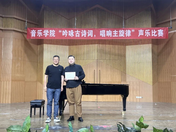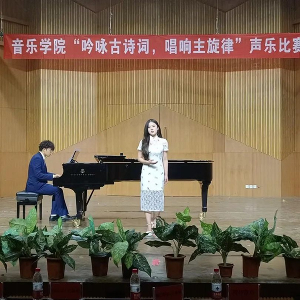 古韵新声,深耕传统。为推进学习贯彻习近平新时代中国特色社会主义思想主题教育走深走实,音乐学院党委深挖中华优秀传统文化的时代价值,用音乐的形式赋予古典诗词新的生命,推动中华优秀传统文化创新性发展和创造性转化。6月15日下午,在昆仑校区音乐厅举办了“吟咏古诗词,唱响主旋律”声乐大赛。经前期综合审查和推荐,共有25名学生入围决赛。